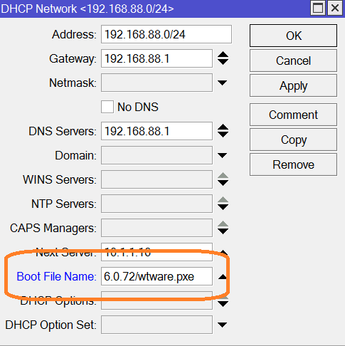 option bootfile-name "6.0.72/wtware.pxe";