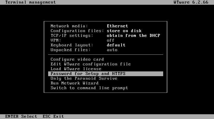 If terminals receive IP-address and other network settings from DHCP server password for web-interface may be specified in 018 DHCP option. Details
