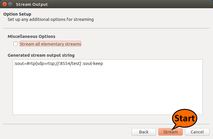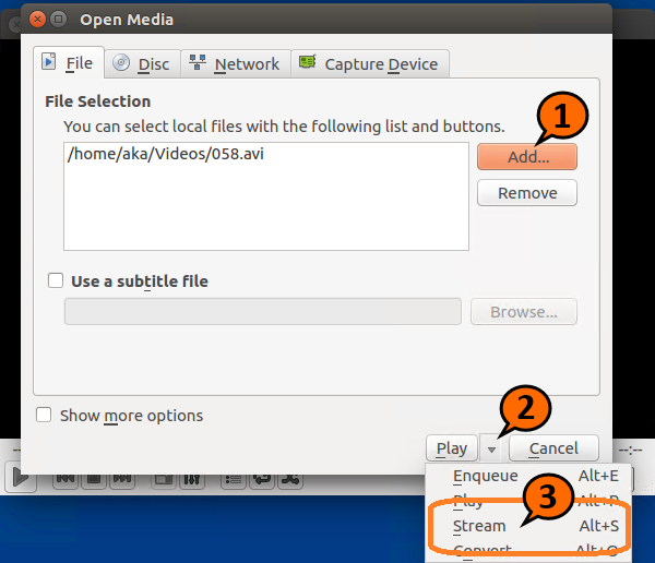As RTSP streaming source you'll need Linux computer, with Windows computer it works worse. Download any fresh Linux. Live USB in virtual machine is ok. Here are the screenshots of streaming start from Ubuntu Linux. On screenshots you see embedded into our distributive Ubuntu VLC. It's not complicated: